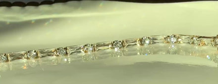 - Tennis-style setting with high-shine finish